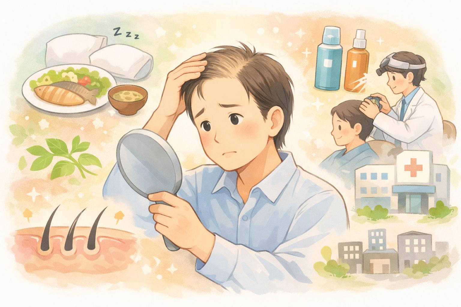 まずは食事や睡眠の見直し、頭皮環境を整えるセルフケアから試してみましょう。しかし、セルフケアだけでは改善が難しい場合や、AGAのように進行性の脱毛症が疑われる場合は、根本的な解決を目指して専門家へ相談することが極めて重要です。早期に専門クリニックで相談することは、より多くの治療選択肢から最適な方法を選べることに繋がり、結果として悩みの早期解決に繋がります。